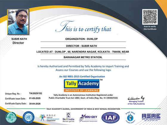 Established in 2005, Tally Academy, India’s one of the most Reputed & Renowned Skill and Talent Development Brand, Tally Academy is an Autonomous Institution Registered Under Public Charitable Trust Act 1882,Govt. of India ( Reg. No. IV-190302550) is also Society Registered (Reg. No. S/2L/47695) W. B. Act XXVI of 1961 .